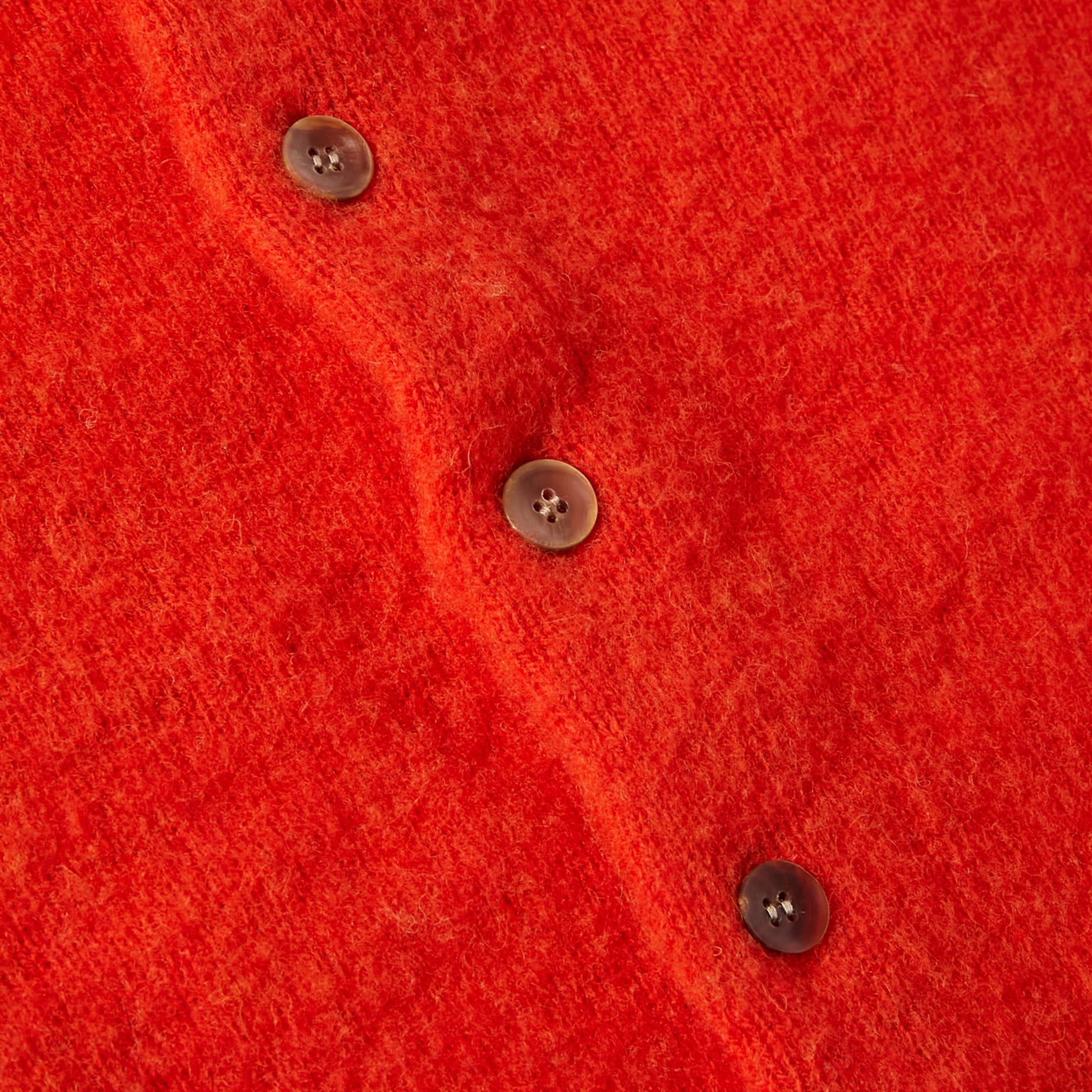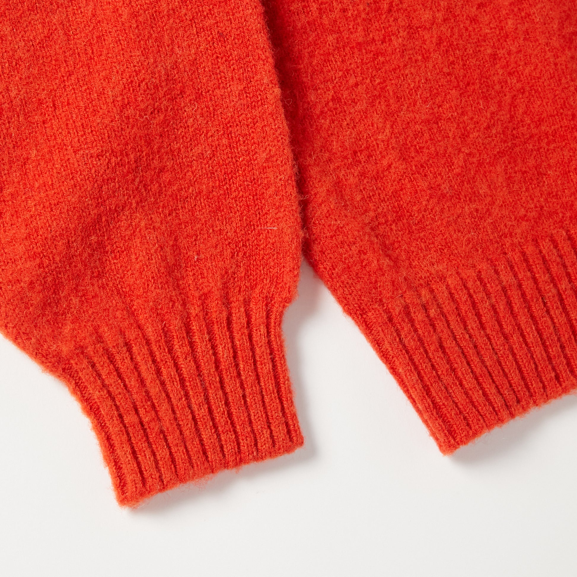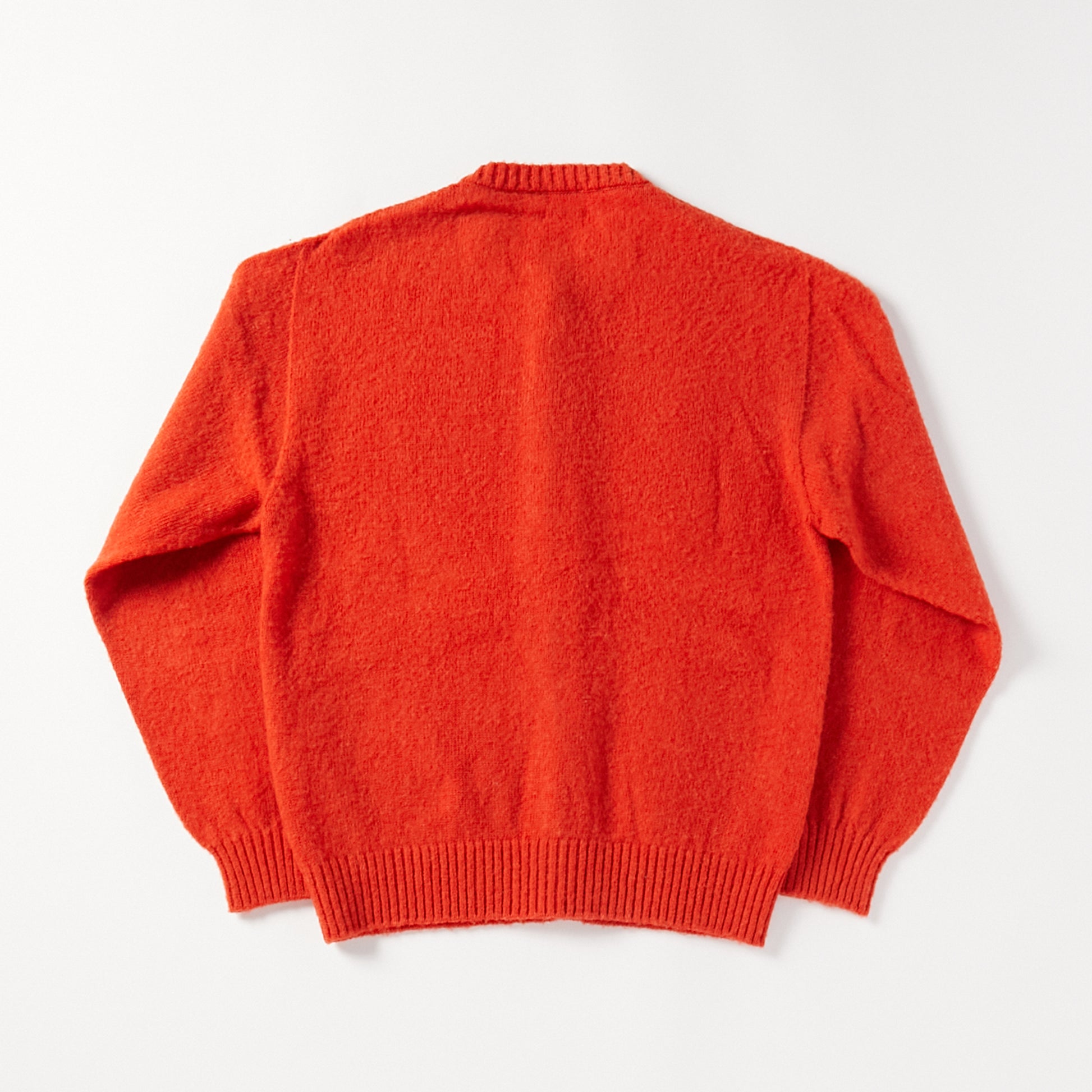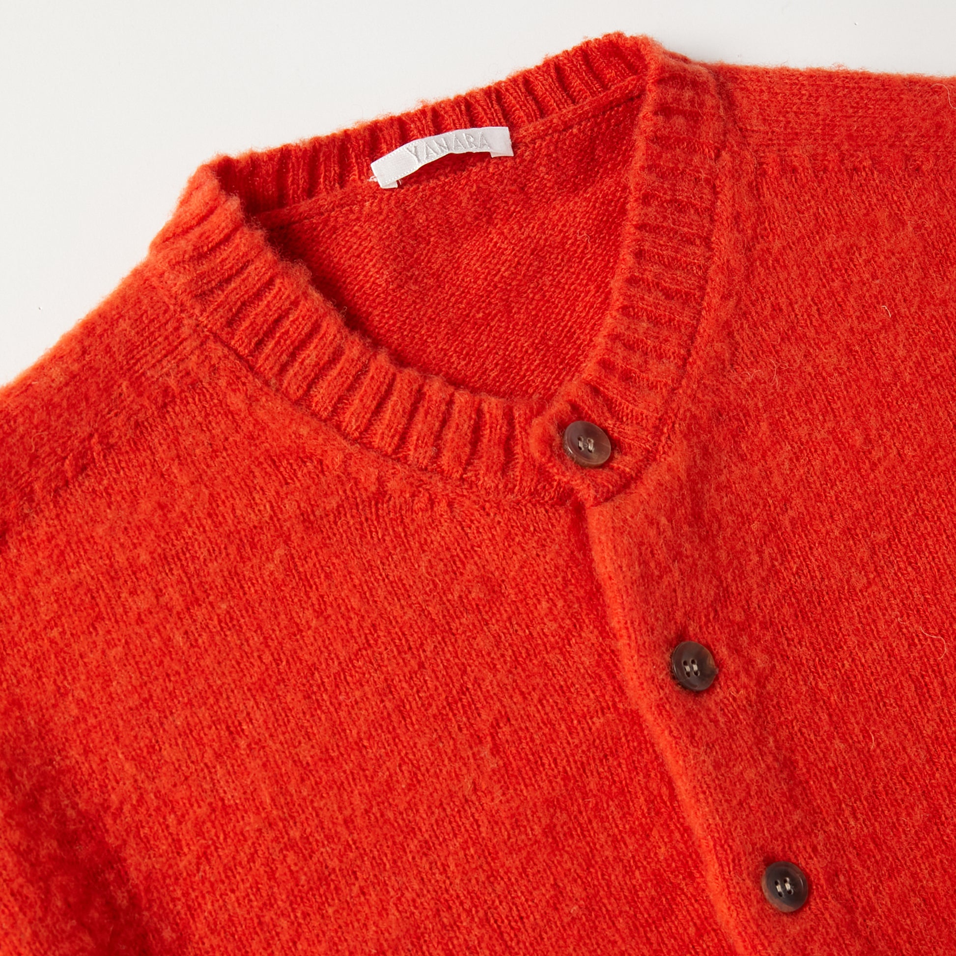 シェットランドタイプの糸を使用し、伝統的なシャギードッグ加工を施した特別なニット。 起毛によって毛羽立てられた表面は、まるで犬の毛並みのようなふわりとした質感に。 軽く、空気を含み、あたたかく─着ていくうちに毛羽が落ち着き、しっとりと身体になじんでいく、育てる楽しさのあるニット。デザインは、スコットランドの伝統を思わせる、シャギードッグ仕上げのクラシカルな丸首カーディガン。 前立てには小ぶりのボタンを等間隔にたっぷりと並べることで、愛らしさと整然とした印象を同時に与えます。