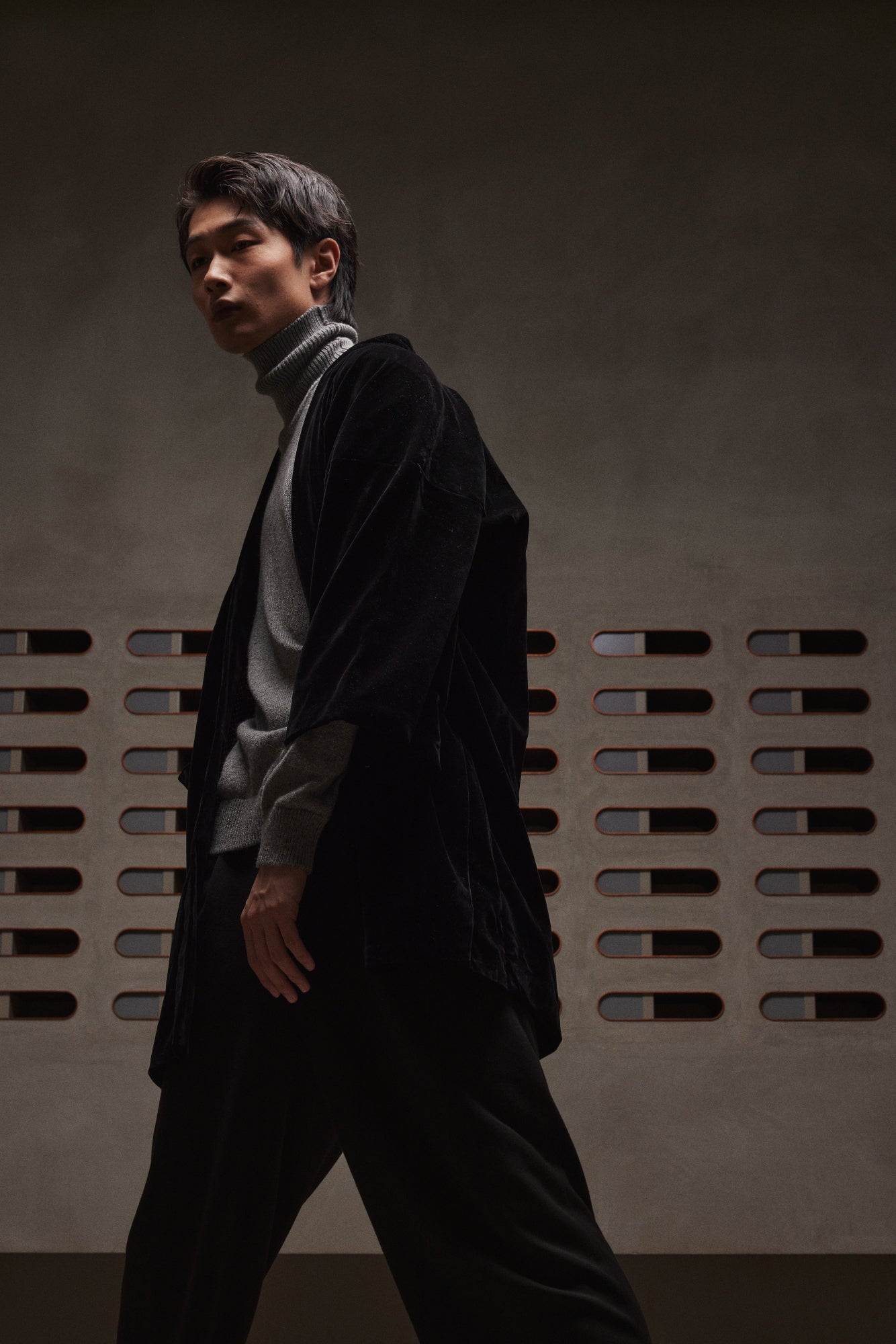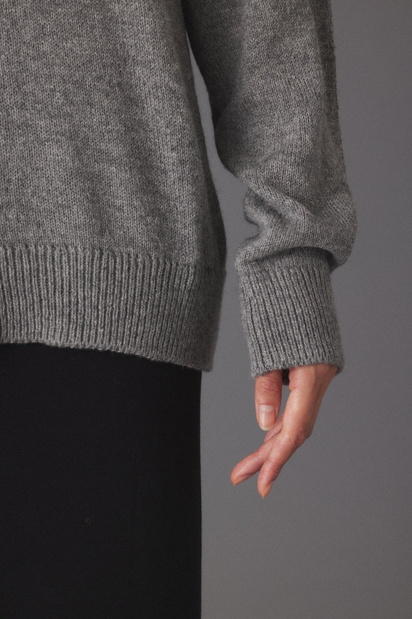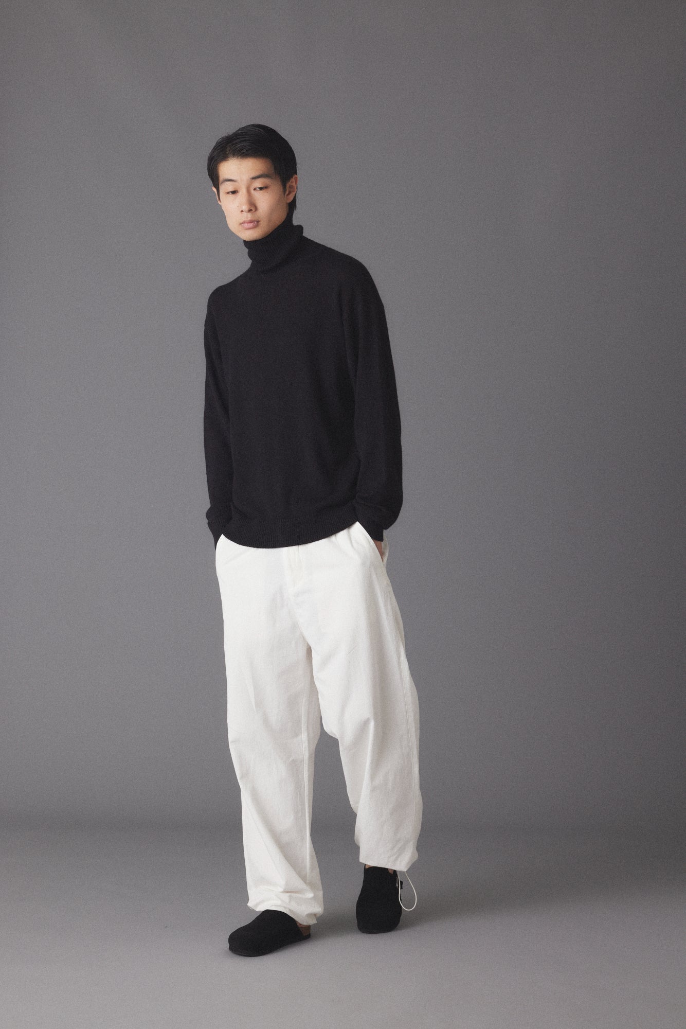 ローゲージが多いコレクションの中、ミドルゲージで仕上げられたセーターは、インナーとして通年使っていただけるような軽さとサイズ感を意識。