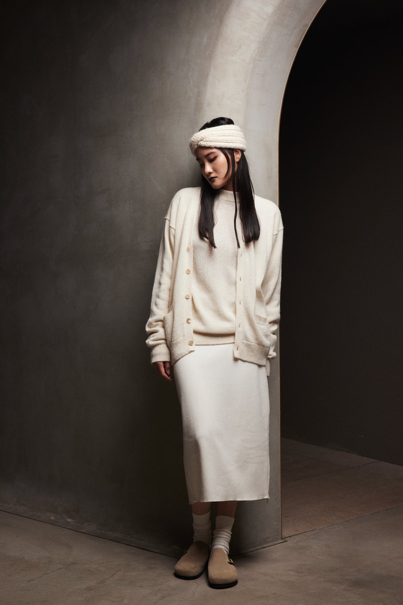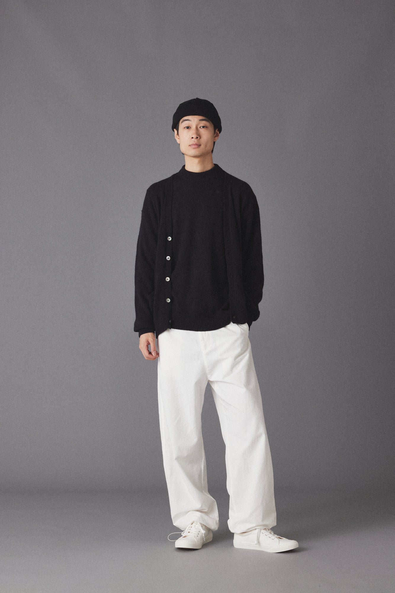ローゲージが多いコレクションの中、ミドルゲージで仕上げられたセーターは、通年使っていただけるような軽さとサイズ感を意識。
