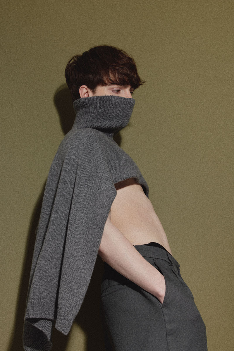カシミヤの滑らかさ、肌触りは膨らみのある高級なカシミア繊維をふんだんに使用し、その肌触りはタートルネックの首元に優しい。