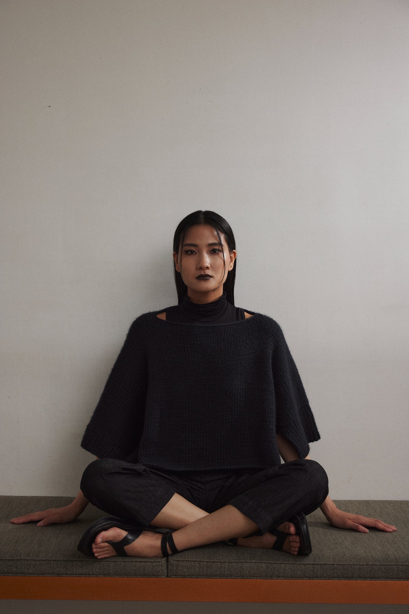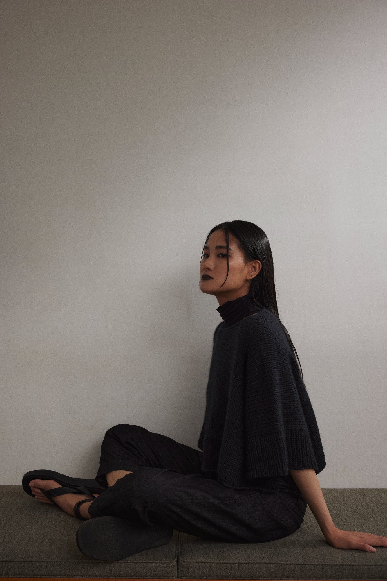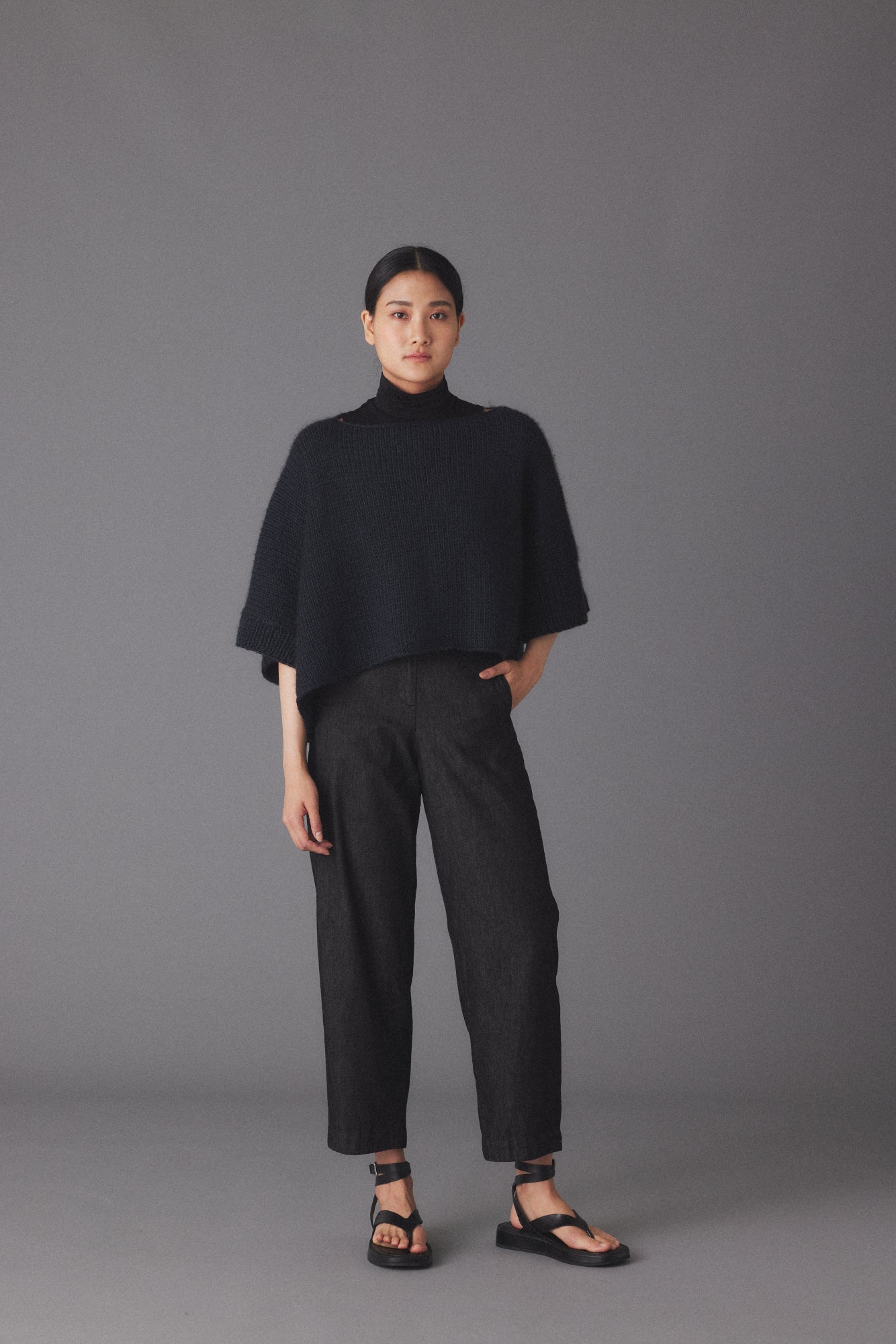 ブランドテーマのひとつにある「和裁」パターンをイメージし、直線から仕上げる「キモノ」は、着用で立体に変化します。