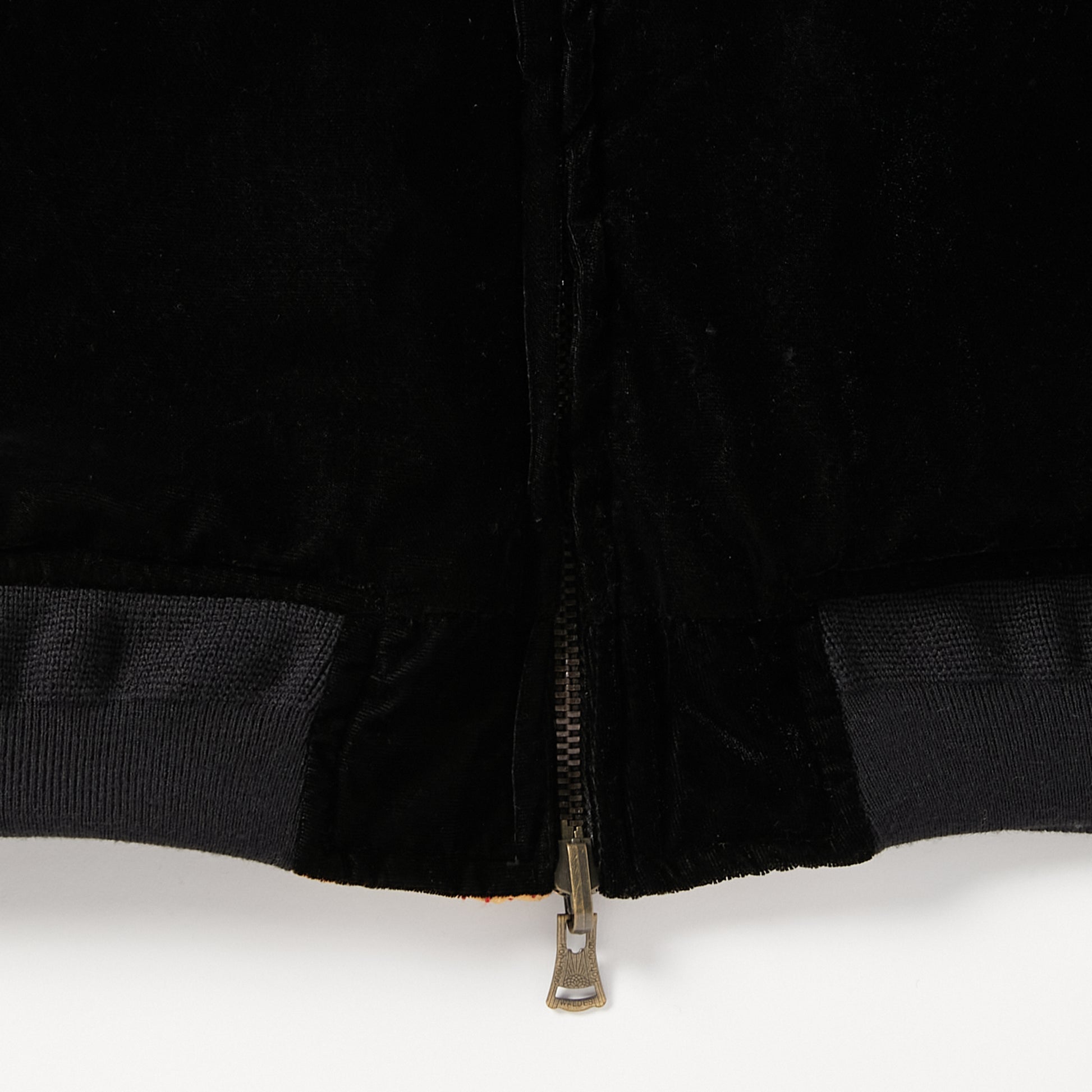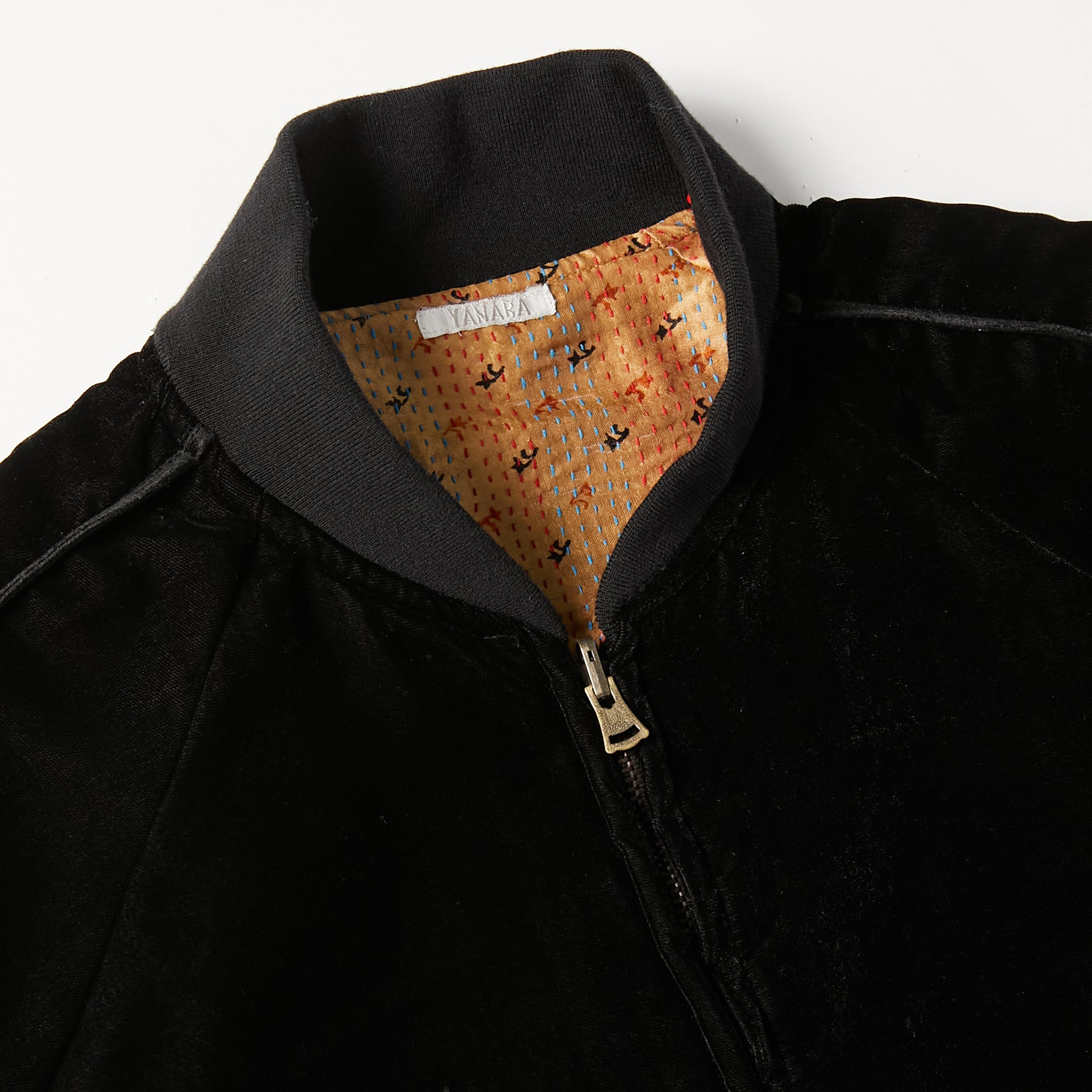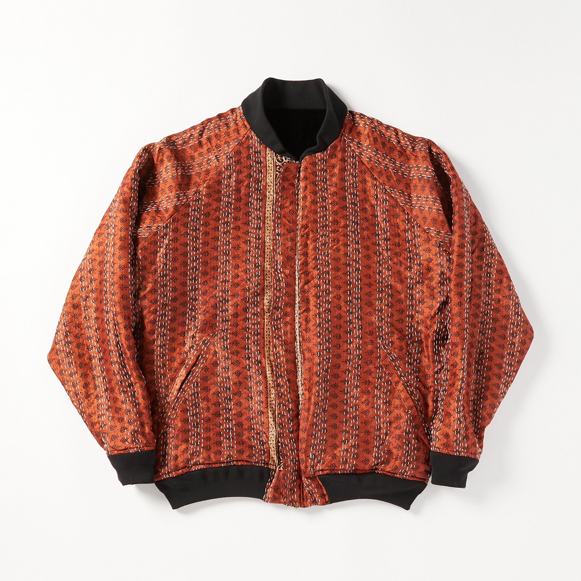 表地には、光の角度で表情を変えるシルクベルベットを使用。シルクならではのとろみ感と光沢感がありながら、どこか落ち着いた佇まい。 袖を通した瞬間に、肌を優しく包み込むような、しなやかな着心地を味わえます。 裏地には、インドの伝統刺し子・カンタキルトを使用。古布を幾重にも重ね、手作業で細かく縫い綴ったアップサイクルの生地は、1点ごとに色や柄が異なるアソート仕様。唯一無二の表情を楽しめる、クラフト感ある裏面も主役になります。 デザインはあえて装飾を排し、素材の風合いそのものが際立つようシンプルに構成。 上下開閉ファスナーによる機能性も備え、表裏どちらでも美しく着られる、リバーシブルアウター。 日常に寄り添う贅沢な一枚です。